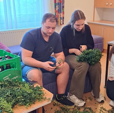 “Viele Hände - schnelles Ende” war unser Motto. Während die einen die Äste abzwickten, konnten die anderen schon fleißig die Erntekrone binden. Als diese dann nach kurzer Zeit fertig gestellt war, ging es für alle als Belohnung auf das Oktoberfest in Hirschbach.